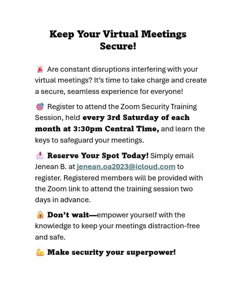 Join our monthly Zoom Security Training Session to learn the keys to safeguarding your meetings.